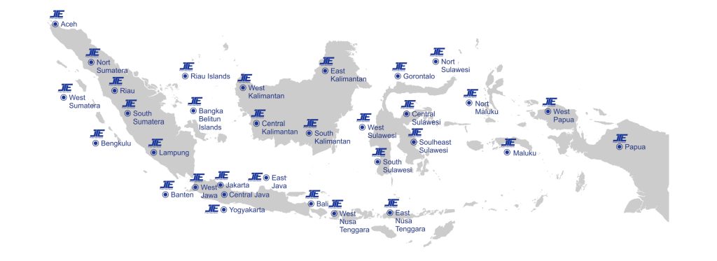 Berikut adalah area jangkauan JTE (Jasa Titipan Ekpres) di seluruh Indonesia: